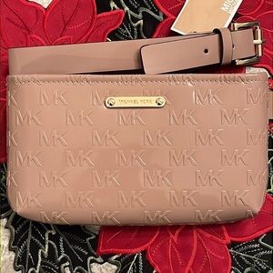Brand New Michael Kors Logo Debossed Zippered Belt Bag in Fawn Shiny Neutral. Women's size S/M. Perfect for anytime you don't want to bother with carrying a purse! Stylish & eye-catching!
