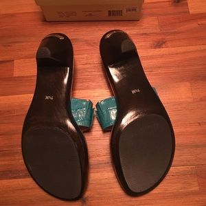 Brand New with Box Never Been Used Michael Kors Sandals. They are turquoise Cary Thong Embossed Leather Sandal
