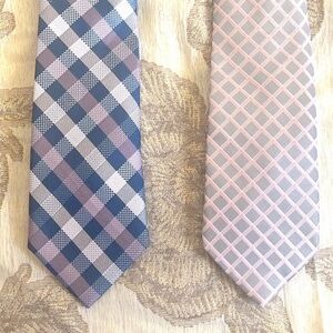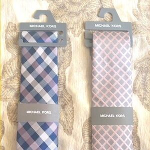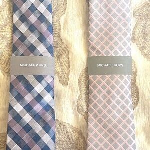 Brand New Michael Kors Set of 2 Ties Checkered Plaid Satin Sheen Business Office