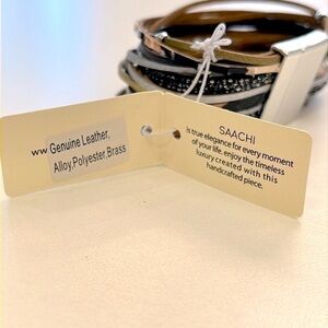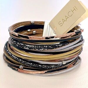 Brand New SAACHI Multi-Strap Beaded Genuine Leather Wrap Magnetic Clasp Metallic Stack Bracelet. 7.5” length end to end when open and laid flat. Absolutely gorgeous boho look! Perfect for music festivals!