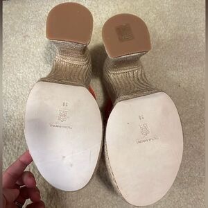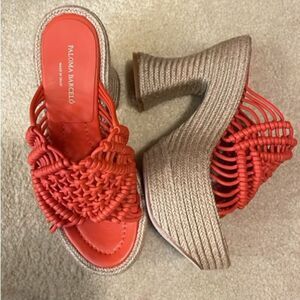 Crafted from 100% leather, these sandals feature a platform and heel wrapped in raffia and an elegant macramé design on the front. The sole is also infused with a non-slip material for added safety.