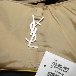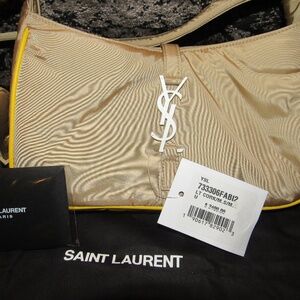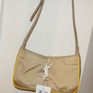 Brand New NWT SAINT LAURENT $2400 YSL Logo Nylon SHOULDER BAG Tan Yellow w tags