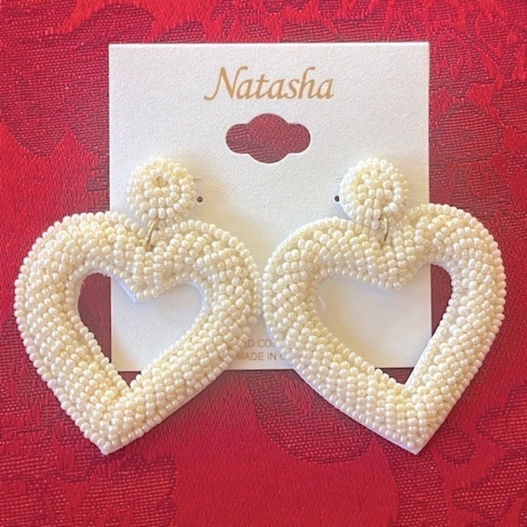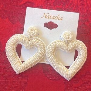 Brand New Natasha Beaded Pearl Cream Heart Drop Earrings Valentine’s Day. So pretty & eye-catching!