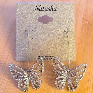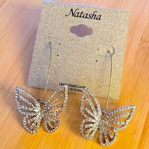 Brand New Natasha Rhinestone Butterfly Silver Tone Drop Earrings Sparkly. 2.5” drop earrings. These are so gorgeous & eye-catching!