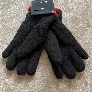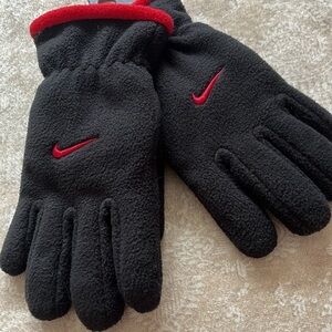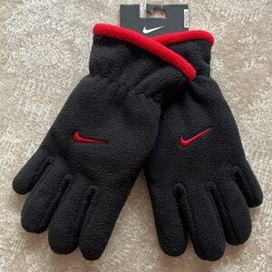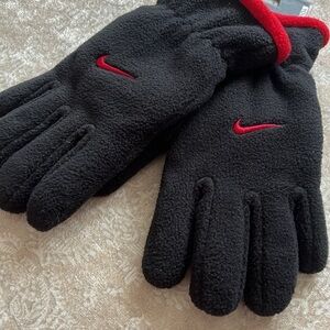 Brand New Nike Boys Black & Red Fleece Winter Gloves Sporty Embroidered Swoosh. Boys size 8/20.