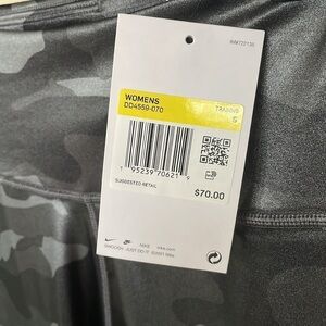 Brand New Nike Dri-Fit One Full Length Mid Rise Shiny Black & Grey Camo Leggings
