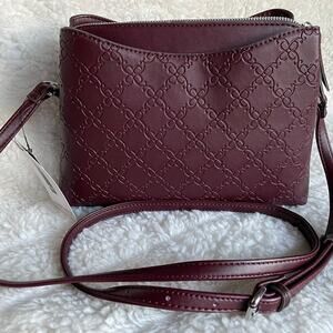 Brand New "Nine West" Embossed Crossbody Purse Bag Smooth Vegan Burgundy