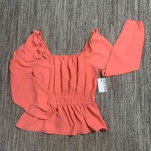 Brand New Nine West Women's Small Salmon Pink Peplum Square Neck Blouse Top