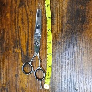 Achieve precise hair thinning with 's silver scissors. Perfect for professional grooming.