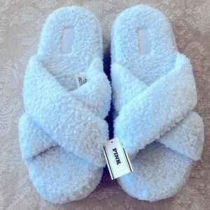 Brand New PINK Victoria’s Secret Cozy Fleece Platform Slippers Criss Cross Strap