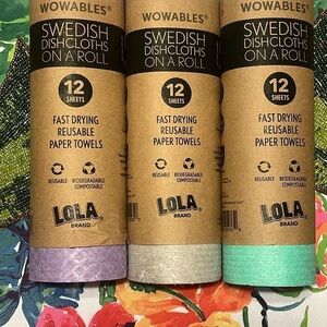 Brand New Pack of 3 Rolls Swedish Dishcloths Reusable Paper Towels Fast Drying. 12 Sheets in each roll. Ultra Absorbent. Biodegradable, Sustainable Cleaning. Extra large sheets 10.625" x 9.75".