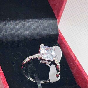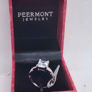 Brand New Peermont Jewelry 18k White Gold Plated Square Shaped Gemstone Ring