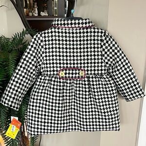 Brand New Penelope Mack Zip Up Pea Coat Black White Checkered Jacket w/ Pink Satin Lining & Matching Hat. Girls size 5. Purchased at Macy's. So cute!