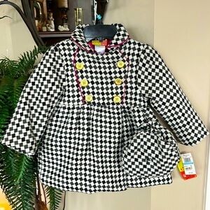 Brand New Penelope Mack Zip Up Pea Coat Black White Checkered Jacket & Hat