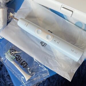 Brand new with box, Philips Sonicare toothbrush with blue handle. Includes one sonic toothbrush ((blue), one premium brush head, one travel storage case, one charger, the user manual, and the original box with packaging, all brand new.