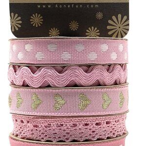 This brand new pink assorted ribbon pack is perfect for adding a splash of color and sparkle to your crafts. It includes 6 rolls, each 2 yards long, so you get 12 yards total of vibrant, versatile ribbons. The ribbons feature a charming mix of glitter, gold, rainbow, and solid pink designs, all in a delicate 3/8" width—ideal for gift wrapping, decorating for Easter, Baby Showers, or Valentine’s Day. The assortment includes lace, burlap, and sparkly accents that are great for bows, bouquet decorations, or embellishing craft projects. These ribbons are lightweight, flexible, and easy to work with, making your DIY creations stand out. Whether you're creating gift wraps, ribbon flowers, or accents for sewing projects, this rainbow of pink shades will inspire your creativity. Perfect for adding sweet touches to special celebrations or everyday gift packages. Ships quick from a smoke-free, friendly home. Bundle and save on multiple craft supplies!