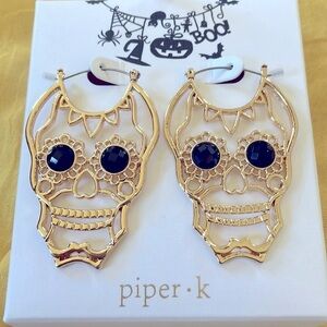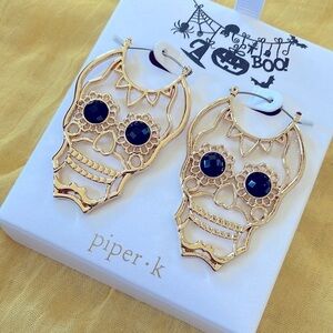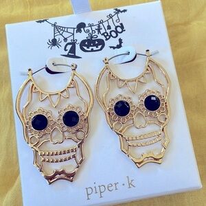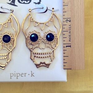 Brand New Piper K Halloween Gold Tone Skull Black Bead Eye Drop Earrings. No box. Unique & eye-catching—super festive!