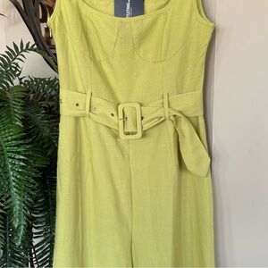 Brand New Pretty Little Thing Lime Woven Belted Split Leg Jumpsuit Lightweight.