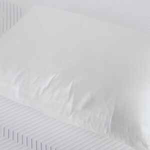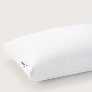 Description adapted from Purple website: The classic cushioning of a down pillow made with Purple's premium hypoallergenic down-alternative fibers that never lose their feathery fluff — providing plush, moldable cushioning that supports the head and neck. The crimped gel fibers are coated with silicone to offer enhanced durability and won't fall flat or clump, even after washing.