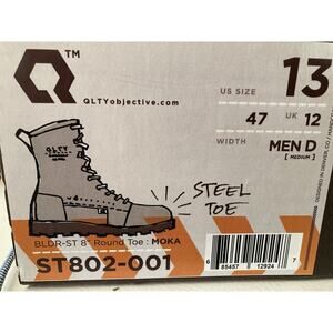 The Brand New QLTY Safety Toe Steel Toe Brown Leather Work Boot in Men's Size 13 high top is a durable and stylish option for those in need of a reliable work boot. With a steel toe for added protection, this boot combines safety with quality craftsmanship. The brown leather outsole and classic work boot style make it a versatile and practical choice for any man looking for a sturdy and reliable footwear option.