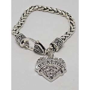 Check out this super cute and sparkling bracelet that says Realtor. It's accented with sparking crystals on a heart. The chain is a thick design made of zinc alloy. (Not sterling silver)