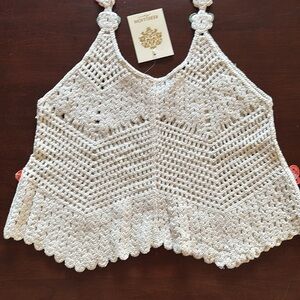 Brand New Rebellion Again Cream Crochet Tank Top Boho Crop Butterfly Cotton.