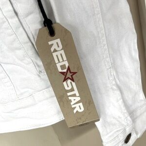 Brand New Red Star White Denim Button Up Collar Jean Jacket Distressed Cotton