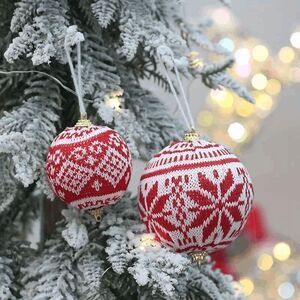 Brand New Red and White Snowflake Knitted Fabric Christmas Ball Ornament Hanging Xmas Bauble Knitted Ball Christmas Tree Decoration Set of 12