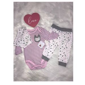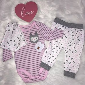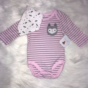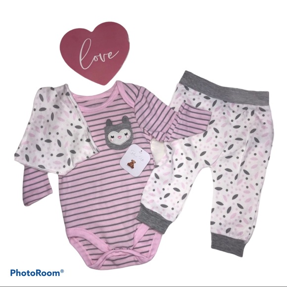 Includes; long sleeve onesie, Pants and bib