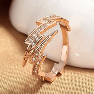 Brand New Rose Gold Plated Adjustable CZ Lightning Ring - OS