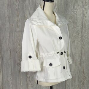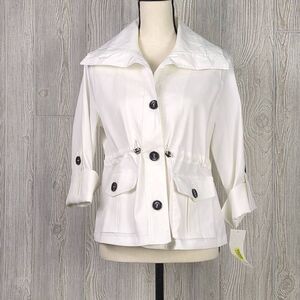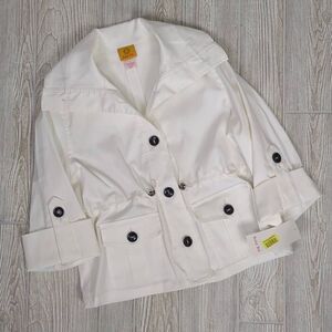 Brand New Ruby Road Women’s Size 8 Cream Peacoat Jacket Stretch Black Buttons