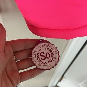 Brand New SO Bright Neon Pink Zip Up Winter Jacket Hooded Puffer Faux Fur Trim