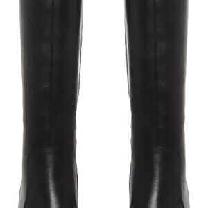 Features: Black leather platform boots with a square toe and chunky block heel, featuring a convenient side zip closure. Perfect for adding a stylish edge to any outfit. The knee-high design offers versatility.
