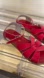 Stylish red sandals with adjustable ankle strap. Perfect for casual outings.