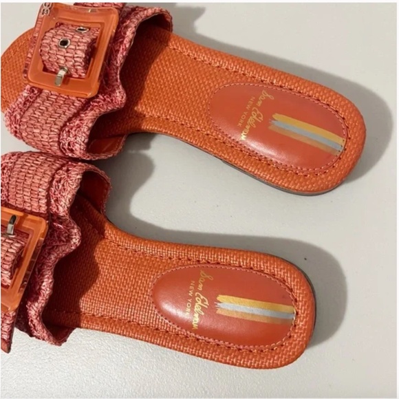 Brand new with tags, in box. Sam Edelman Bambi Raffia slides in Orange. Size 7.5 M