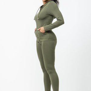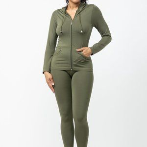 The perfect go to for a cute, comfortable stylish everyday look. The form fitting jacket features a zip-up front, with long sleeves and convenient side pockets. The matching leggings have a high-waisted design and soft, stretchy fabric for unbeatable comfort. Available in a range of versatile colors, this set is perfect for running errands, heading to the gym, or lounging at home. Upgrade your wardrobe with this must-have two-piece set!