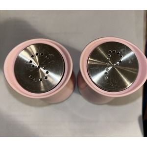 Brand New Set of Pink Salt and Pepper Shakers. 4 oz Glass and Stainless Steel