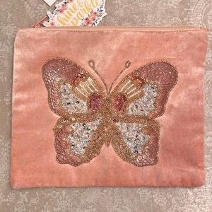 Brand New Set of Velvet Beaded Butterfly Zippered Pouch & Glitter Card Key Case