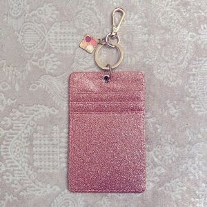 Brand New Set of Blue Velvet Beaded Monogram “M” Zippered Pouch & Pink Glitter ID Badge Card Key Case. Such a gorgeous set!