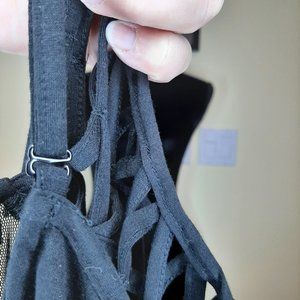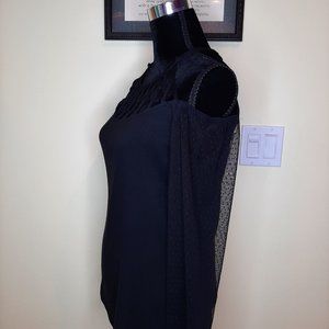 Brand New Sexy Black Criss-Cross Cold Shoulder Sheer Lace Sleeve