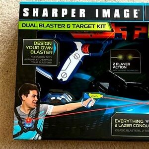 Brand New Sharper Image Laser Tag Dual Blaster & Target Kit Chest Plates. Two player action with infrared technology. Fun game! Makes a great gift!