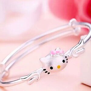 ☆ Brand New Silver Hello Kitty Bangle Bracelet with Pink Bow. We have 2 left in stock, this listing is for one. If you'd like to order both, please message us so that we can adjust the listing for you!