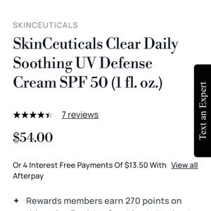 SkinCeuticals Clear Daily Soothing UV Defense Cream SPF 50 (1 fl.oz) Retail price $54