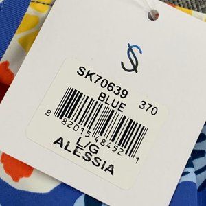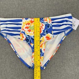 Brand New! Skye Floral Bikini Bottoms Mid Rise Large Blue White Striped Orange