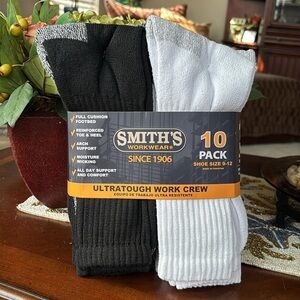 Brand New Smith's Workwear 10-Pack Ultra Tough Work Crew Socks Cushioned Wicking