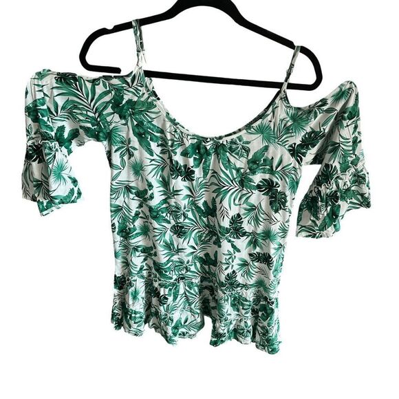 Brand New Solitare Swim Floral Palm Leaf Beach Cover Up Cold Shoulder Dress Womens Size S