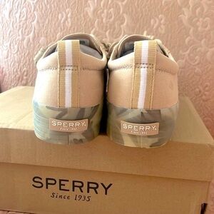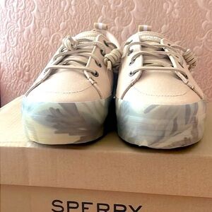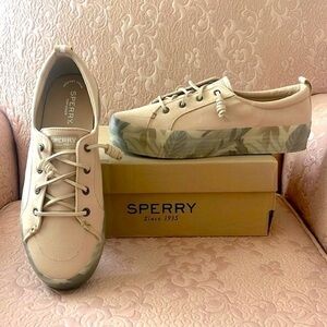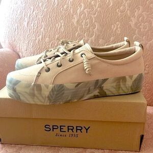 Brand New Sperry Crest Vibe Platform Sneakers Beige Green Leaf Tropical Neutral