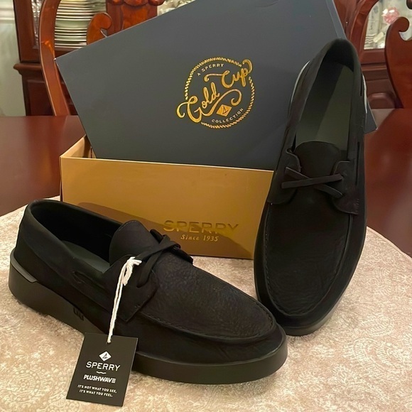 Brand New Sperry Men's Gold Cup Waterproof Nubuck PLUSHWAVE Cup Boat Shoe Black