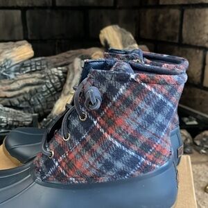 Brand New Sperry Saltwater Wool Plaid Duck Boot Waterproof Blue Winter Rain