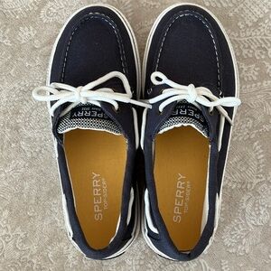 Brand New Sperry Top-Sider Hook & Loop Navy Nautical Boat Shoes Lace Up Loafers. Youth size 2. No box. Super cute & preppy!